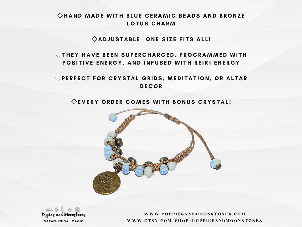 Power Bracelet with Lotus Charm- Bells- Ceramic Beads Reiki Infused